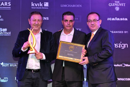 Elbaz receive their award from Thailand Property Awards judge Mark Bowling.