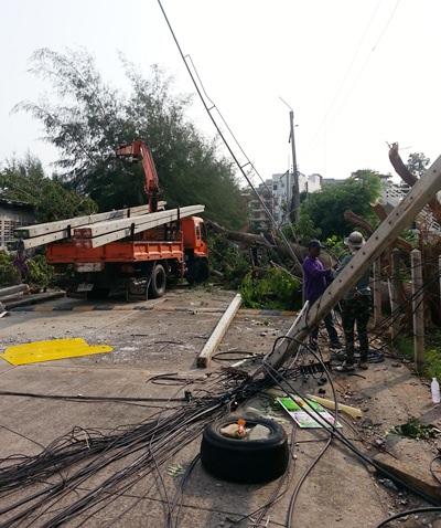 Falling trees took out seven power poles on Soi Yensabai, blacking out