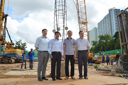 The Oct. 25 merit-making ceremony saw Sompop Wanitsaenee and Saksitti Theerapornsathan, managing directors of AERAS Condominium welcome Maj. Gen. Itthiphol Ittisanchai, superintendent of Muang Nakorn Nayok Police Station, and Wirun Wongpahisampot, honorary state attorney of the Office of the Attorney General in Bangkok to the beachfront property to bless the laying of the first foundation pile.