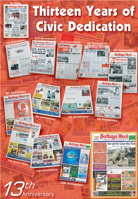 On Sunday, 23 July, 2006, the Pattaya Mail celebrates its thirteenth