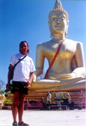 Only now do you drag Aunt Aggie out of the shade. Tell her to stand at the front of the Buddha and walk slowly towards you while you look through the viewfinder. Stop her when she fills the frame from top to bottom. Now move her slowly sideways so the Buddha image appears again beside her in the photograph. Click the shutter button and you have the perfect shot again.
