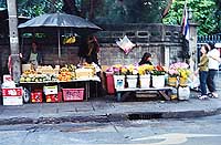 hungry. I stop at the fruit vendor’s cart, where every morning I buy my