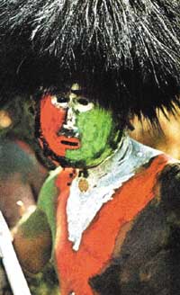 and smear mud over his body to portray an evil spirit. In a macabre dance