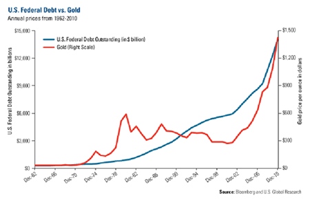 trillion. Graph 4 shows how this affects the price of gold when compared to US