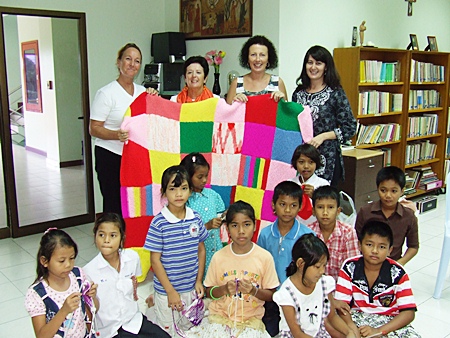 Two years ago I asked two of my Irish friends from the Pattaya International Ladies Club (PILC), Alana Clarke and Geraldine McEvoy, if they would like to assist in teaching the children at Fountain of Life (FoL) knitting. They both agreed so the three of us set off the following Monday afternoon to the FoL with wool and needles.