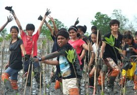 Planting mangrove trees