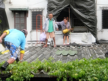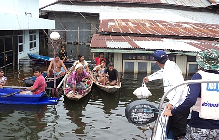 volunteers evacuate people from rooftops in Nava Nakorn.