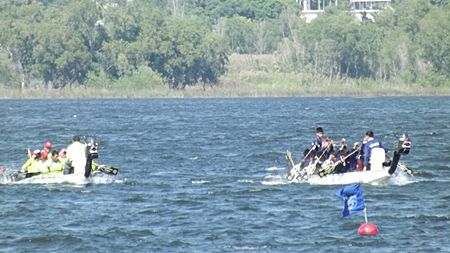 The crew of the “Akhanawa” won the headline race for the second consecutive year, taking home the HRH Princess Sirindhorn Cup and 100,000 baht for the 55-paddle longboat race. “Singh Isaan” from Nong Khai finished second and won 50,000 baht and “Chao-Mae Praduthong” from Chonburi won the 30,000 baht third prize.