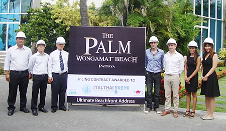 From left: ITAL Thai Trevi’s Somboon Kwangthung (Project Manager), Arthit Lochinda (Assistant General Manager) and Ekachai Phongphua (General Manager) pose with Palm developers Winston Gale, Simon Swain and Sukanya Gale, plus Sathida Limphasut from CB Richard Ellis Thailand.