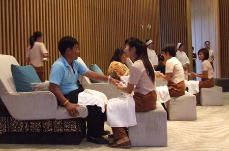 About 80 Dusit Thani Pattaya Hotel employees rolled up their