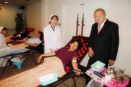 sleeves to give blood for the Chonburi Red Cross.