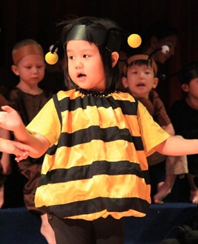 Singing a little bee song.