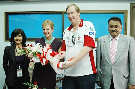 Ambassador to Thailand is welcomed to the Pattaya Mail offices by nearly