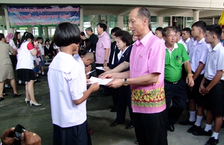 Gov. Khomsan Ekachai helps a youngster with