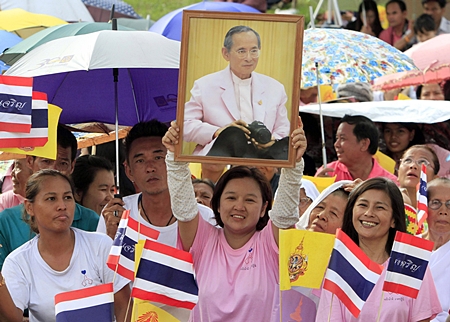 with the monarch - lined the roads from Bangkok to the country’s central