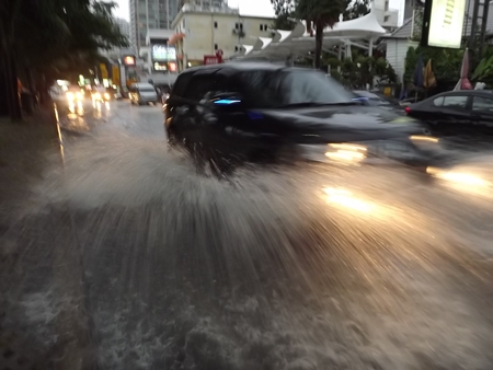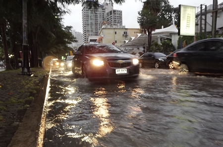central Pattaya, which had about eight centimeters flowing over sidewalks.