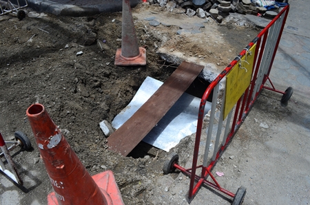 The Pattaya Engineering Department is fixing broken brick work on Walking Street to prevent accidents.