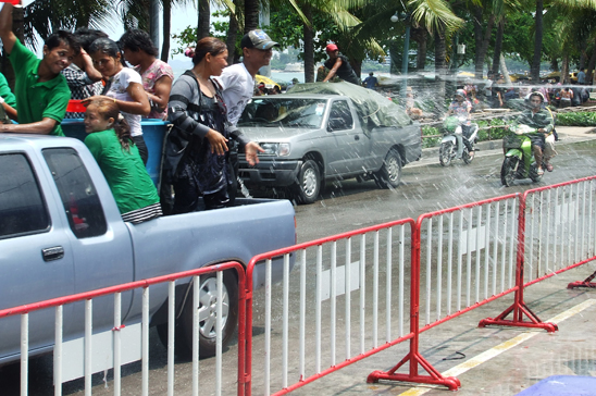 Thai and foreign tourists, young and old, are out with their buckets and pistols, or even a water hose to spray people passing along Pattaya beach road.