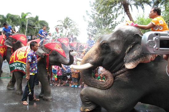 Water splashing and respect paying to the Buddha by tourists and the jumbos, what a great fun and a high pressure day at the Nong Nooch Garden, Sattahip