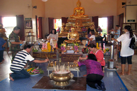 Over 500 Buddhist devotees gather up at Sattahip Temple to pay respect to the former chief abbot 'Luang Pho Ee', and listen to chanting from the monks to bless them to have a brighter year to come