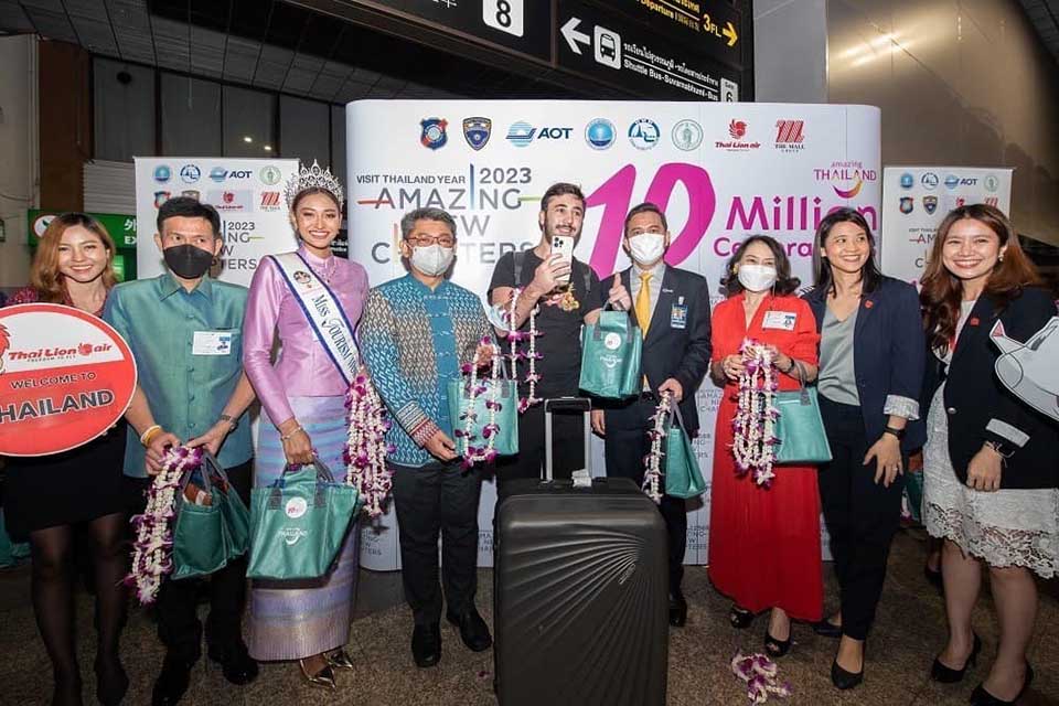 The Amazing Thailand 10 Million Celebrations are being held today at seven key international and regional airports in Bangkok (Suvarnabhumi and Don Mueang), Phuket, Krabi, Chiang Mai, U-Tapao, and Samui, as well as two border checkpoints in Songkhla (Sadao) and Nong Khai. (TAT)