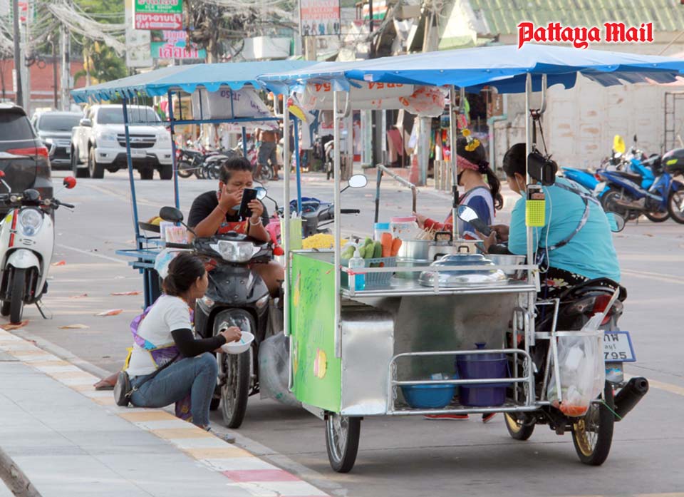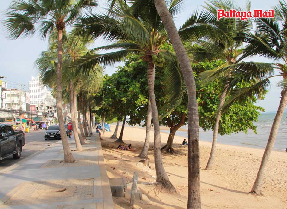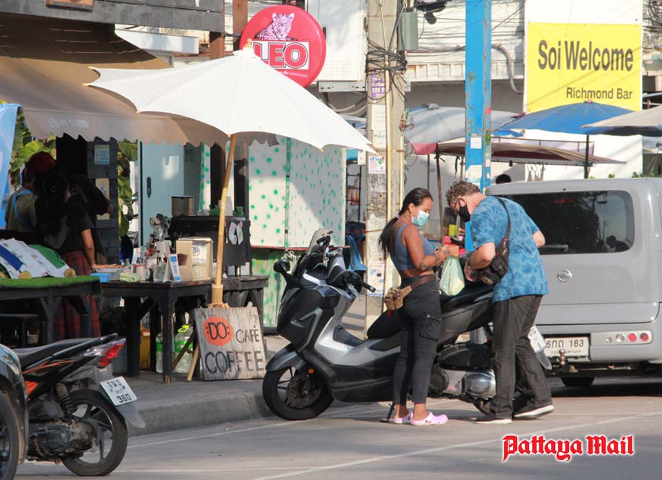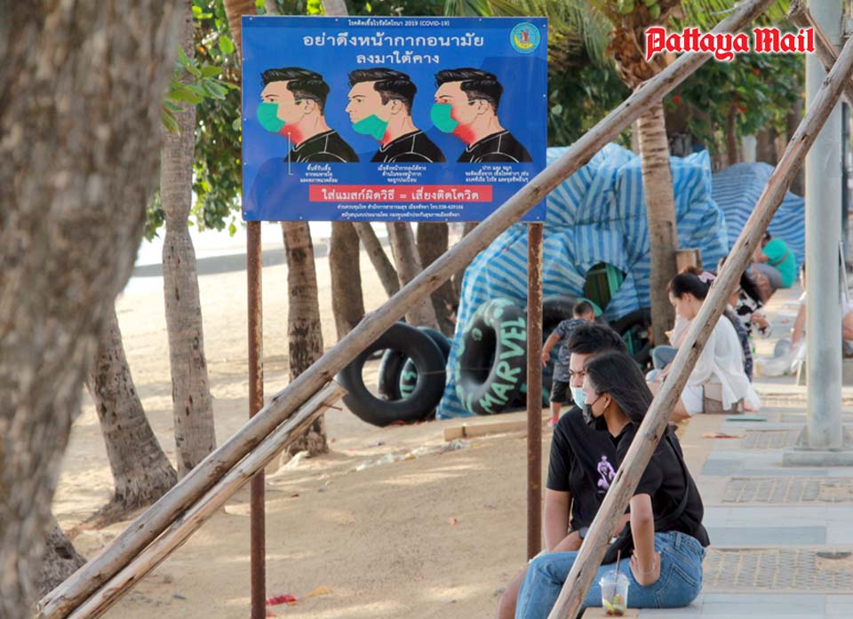 Jomtien Beach saw scattered sun worshipers, either sunning themselves or eating in very small groups on mats in the shade. Large gatherings were dispersed.