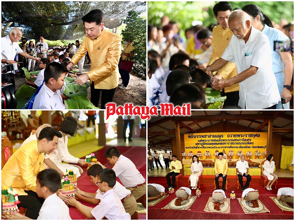 PATTAYA, Thailand – In a poignant ceremony held at the Sanctuary of Truth in Naklua, Pattaya, Mayor Poramet Ngamphichet led a collective ordination event on December 5, where 300 novices dedicated themselves spiritually to the memory of His Majesty King Bhumibol Adulyadej. Distinguished guests, citizens, guardians, and participating novices gathered to offer alms and merit, expressing gratitude on the late King Rama IX’s birthday.
