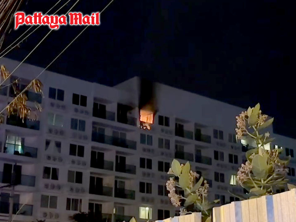 Firefighters were called to the Amazon Residence Condominium on Soi Wat Boonkanjanaram 5 around 1:30 a.m. Feb. 4. Flames were pouring out the 8th floor balcony door.