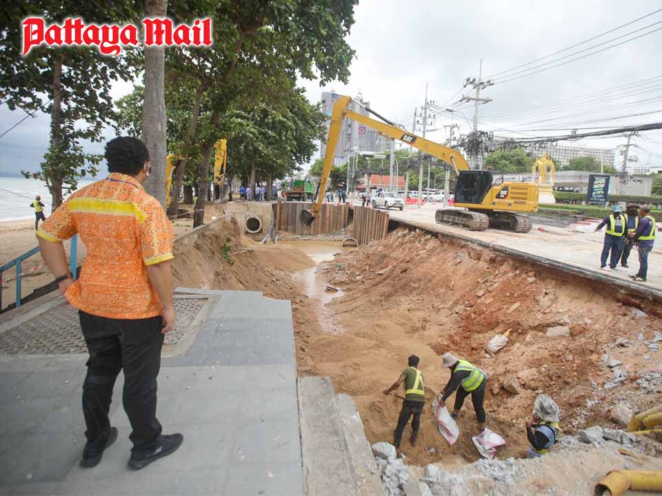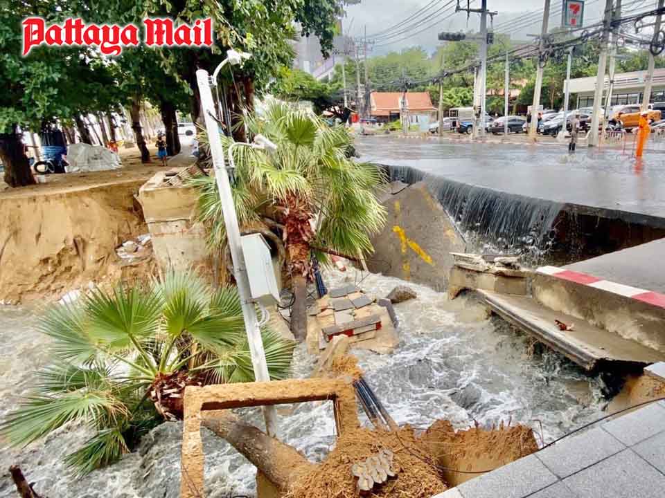 Pattaya’s mayor ordered urgent repairs on a stretch of Jomtien Beach Road that collapsed in Wednesday’s rainstorm.