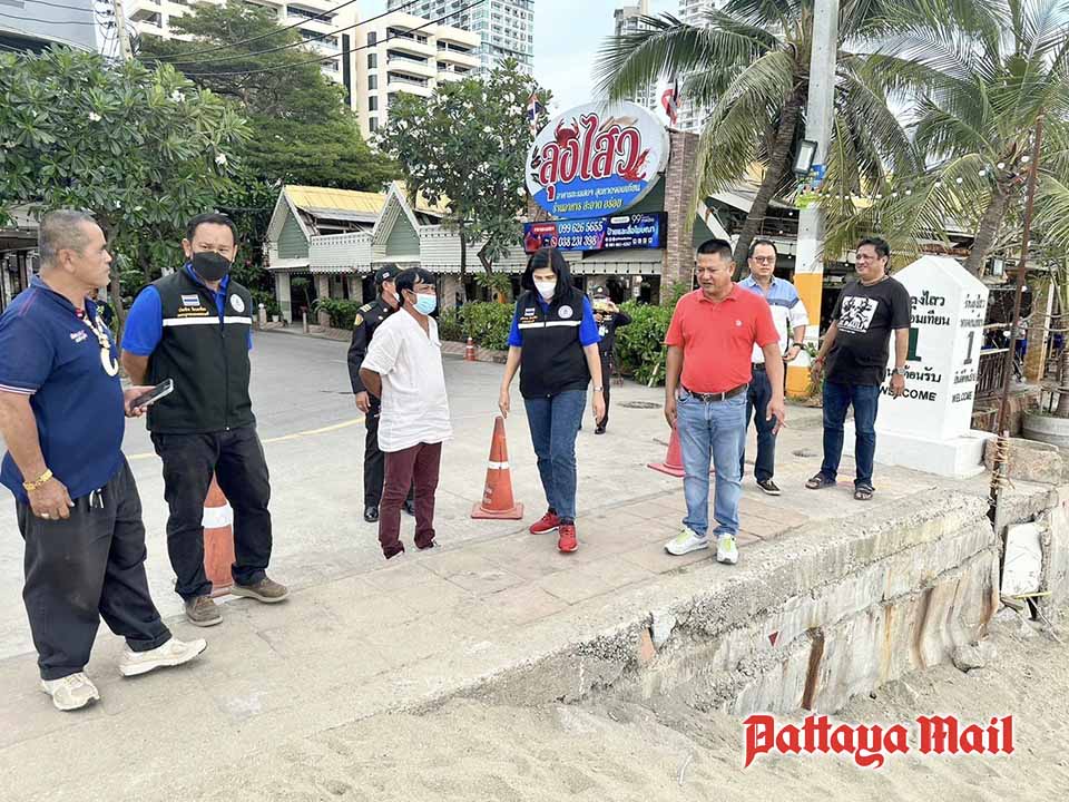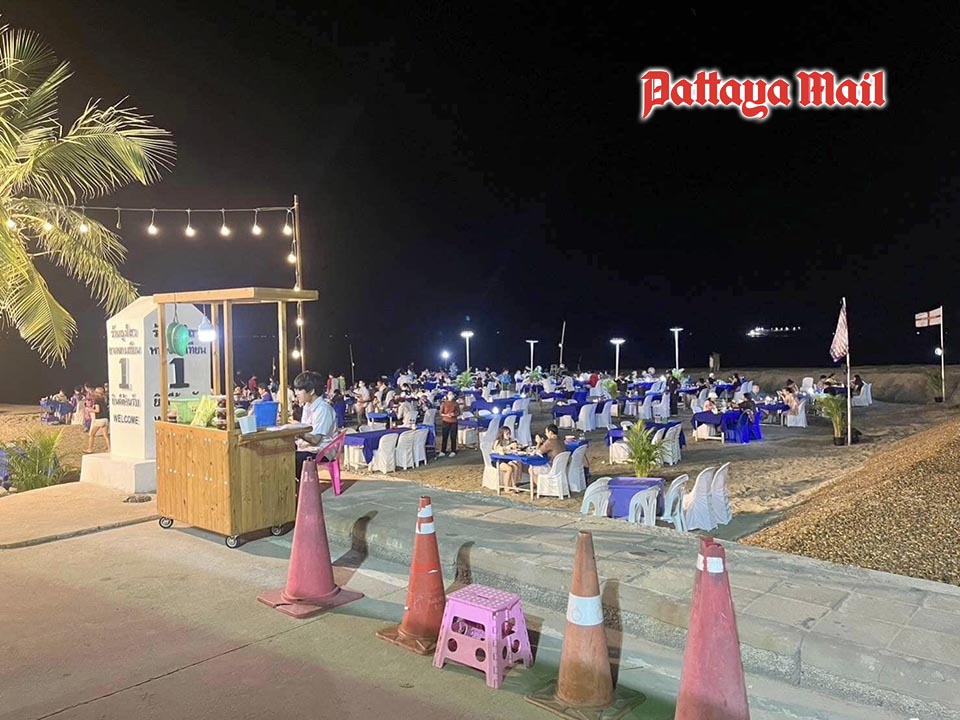 Najomtien Mayor Rapeephan Rattanaliem, Sattahip Deputy District Chief Niwet Pungkusol and Najomtien police chief Pol. Col. Wattanachai Sangrit visited the Lung Sawai restaurant Feb. 4 to find nine banquet tables, each seating eight people, on the sand with table clothes and place settings.