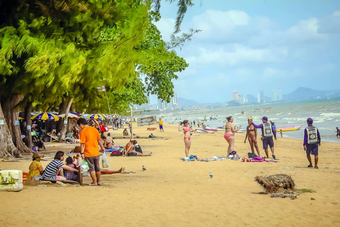 Pattaya officials once again began warning tourists they can only light up in designated areas on Pattaya and Dongtan beaches.