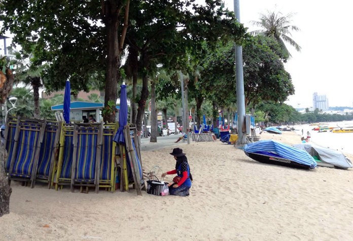 Displaced vendors and beachgoers were discussing the state of affairs on central Pattaya Beach Sept. 20, a Wednesday on which sellers had little to do.