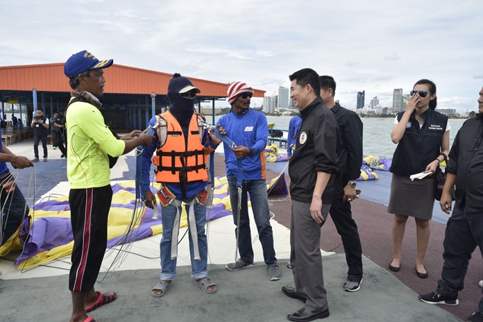 Pattaya and Tourist Division police met with representatives of 16 companies offering parasailing and sea-walking adventures July 14, a day after Chonburi’s governor called on all the province’s watersports operators to recheck safety equipment and follow regulations.