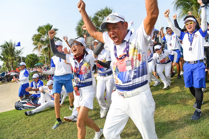 Leading 10-6 from the first two days of foursome and fourball play on Friday and Saturday, the Thai team needed just four and a half points from the 12 singles matches on Sunday to secure the $1.2 million title and trophy, but the home team struggled to get across the line.