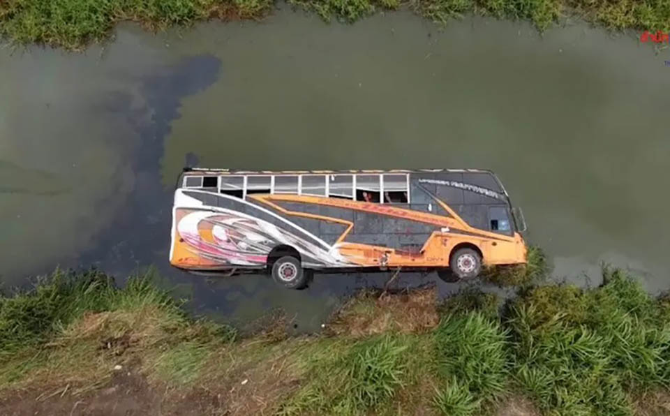 At the scene, skid marks stretching over 50 meters indicated the bus had veered off the road before plunging into the ditch. Emergency crews temporarily closed 2–3 lanes of the highway to retrieve the wreckage.