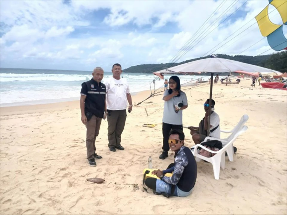 Phuket Tourist Police and officers from Karon Police Station visited the site at 12:20 PM on August 12th to investigate. They spoke with Mr. Boat, the parasailing operator involved in the incident.