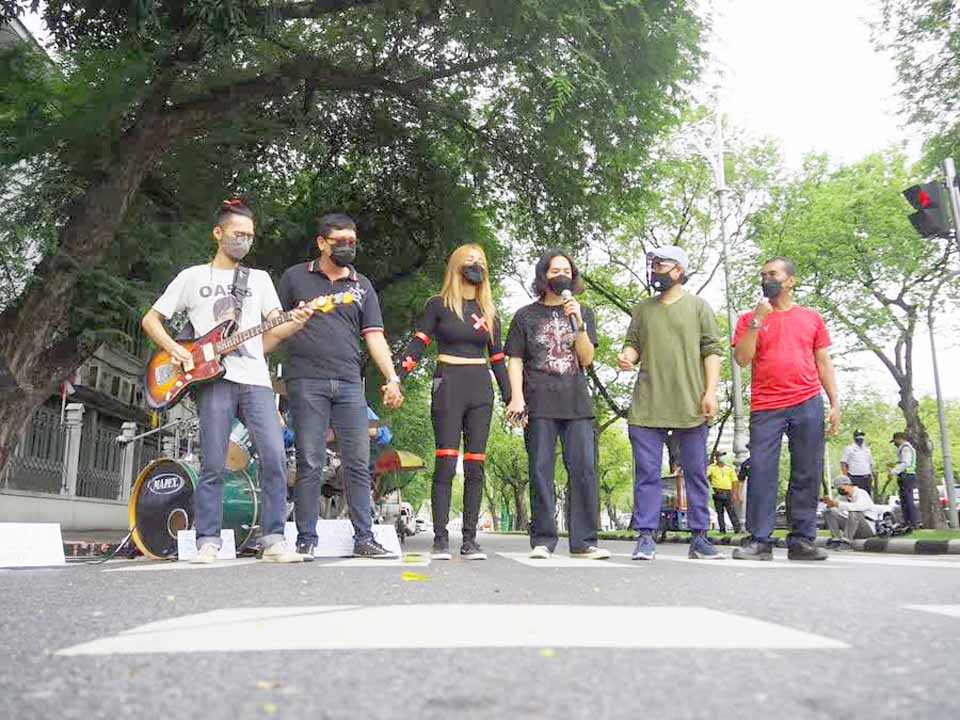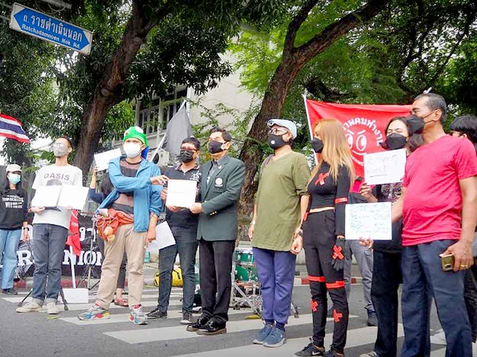 Members of the Workers’ Union have joined with a group representing musicians and night workers as they marched on Ratchadamnoen Nok Road to submit a letter stating their demands to the prime minister. The group is calling for entertainment venues to be allowed to resume operations on December 1, in response to an earlier CCSA announcement on the extension of entertainment venues’ closure to January 16. During the day, the group staged musical performances with a focus on lyrics that reflected the workers’ struggle to earn income in the midst of the pandemic.