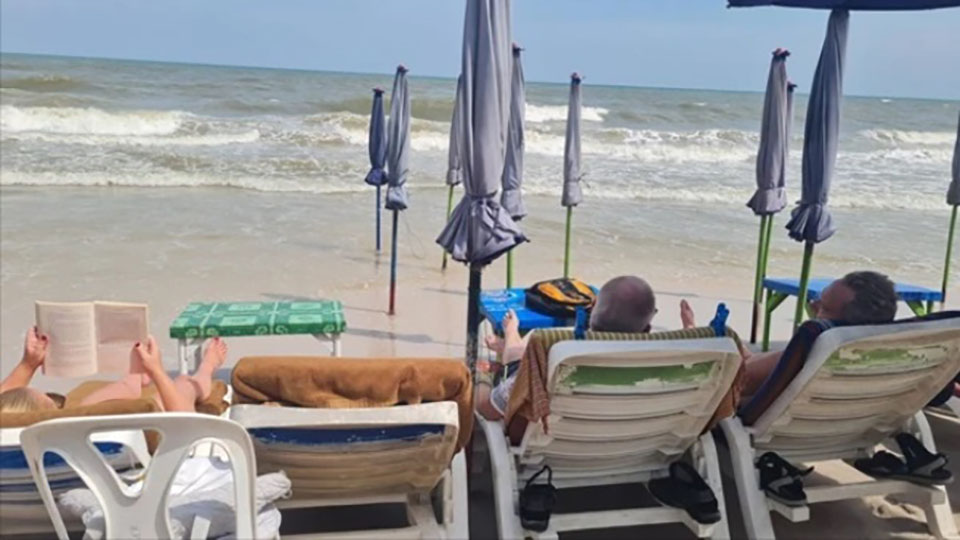 Ms. Orawan Panngulerm, a beach vendor and owner of one of the 22 beachfront food stalls, mentioned that her team had moved chairs, beach beds, and other items to higher ground as waves and winds caused sea water to surge toward the beach. Today marks the fourth consecutive day of this severe weather pattern, though waves are expected to subside in the afternoon, and conditions should return to normal.