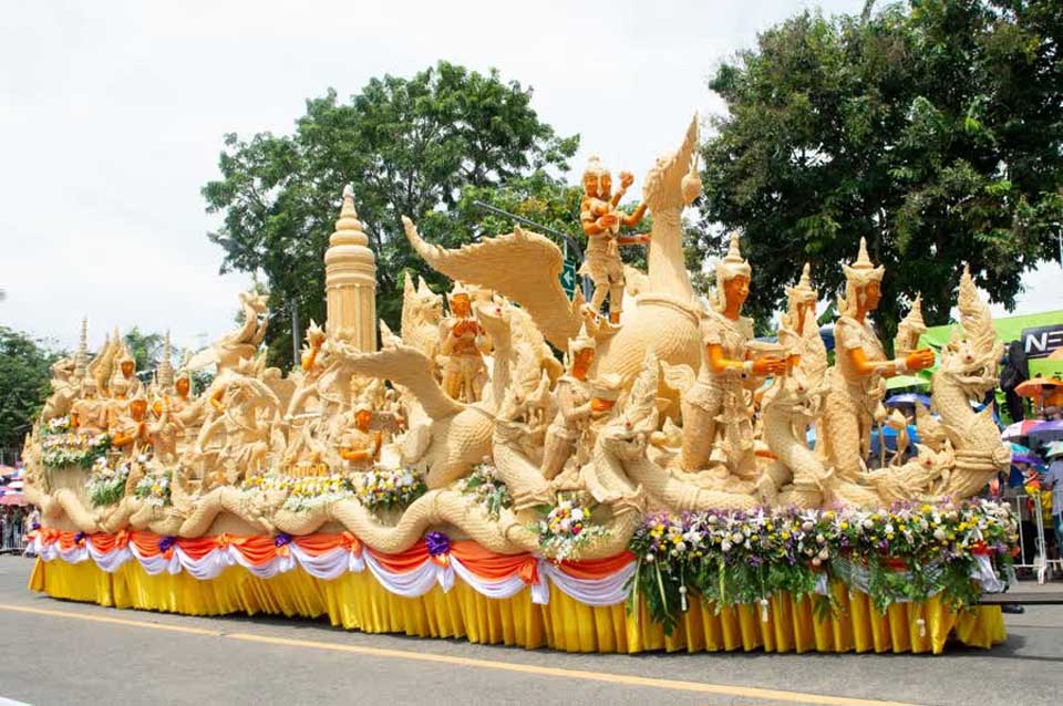 There will be a candle ceremony and contest, a procession of intricately carved candles in the evening, and a light-and-sound show on AsalhaBucha Day (July 13). Also scheduled for July 14 are two parades that will feature intricately carved candles and wax displays. The day will conclude with an offering of candles, a light-and-sound show, and the announcement of the candle contest winners.