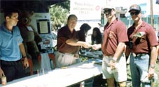 And speaking of bars, Robbo�s beer tent was obviously the place to find missing parents. Robbo, �daylighting� from his usual bar at Delaney�s, was ably assisted by staff from TQ and other helpers. The Neil Smith arranged, Carlsberg sponsored outlet did a roaring trade all day, with even the good Sister Joan from the Fountain of Life Charity being seen to have a small thirst quencher bought for her by Bjorn Richardson of the Royal Garden Resort (even if it were delicately placed inside a Pepsi container)!