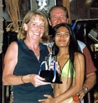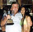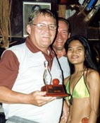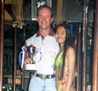 Steve Mascari, the 1998 Champion, shot an 81 this year and lost the trophy for Low Gross in a count back to Andy Munroe. Andy in turn lost the Division One Winner�s Trophy in a count back to Svein Vistung. Andy and Svein had 37 points. Taking third place in the first division was Magnus Johansson who was one Stableford point behind with 36 points. As close as the race was in Division One, the battle in Division Two was even closer. Philippe Berra, John Gibson, and Peter Engwall all finished the day with 38 points. The count back for the division winner went all the way to the last hole, with Philippe beating out John three points to one. If there was anyone in the TQ on Friday night that was more delighted than Dave Nance, then they were keeping it to themselves. Dave was one happy fella. He won the third division Winners Trophy with 42 Stableford points and there was no apparent disappointment in just missing out on the Green Jacket. Dave was also surrounded by his buddies who seemed as happy for him as they would have been had they won themselves. That is what makes golf tournaments in Pattaya, and the TQ Masters in particular, so special. The food and drink were good, but the vibes were outstanding. One hundred and twenty eight golfers had participated in a well-organized event that was the result of great teamwork. Pattaya Sports Club Golf and Woody�s folks at TQ had paired up to do a tremendous job. But this event had an extra player that was a welcome addition to the team. Eastern Star went all out to host a professionally run tournament with a superbly presented course, even to the extent of checking and re-painting the lateral hazard stakes at seven o�clock on the morning of the competition. That kind of cooperation is refreshing and gratefully acknowledged. Kuhn Chotiratna, Easter Star�s General Manager, and her staff are to be congratulated for a job well done.