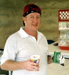 ![]() Some guys have all the fun - Richard here with the �Bloody Caesar� pourers at the drink stop. |