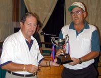 Golf Chairman Mike Franklin (left) awards the winning Drag Team with their