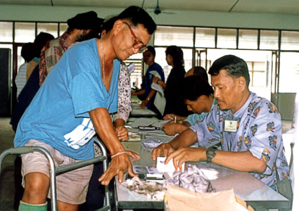 Chonburi senate election enjoys 74% turn out 2 arrested in Bang Lamung for buying votes Last Saturday’s senate election made 4 March 2000 a historical date in Thai history books, as voters went to the polls for the first time to elect senators under the governance of the new constitution. Eligible voters throughout Thailand took advantage of their right to participate in the election, turning out in record numbers at the 87,600 voting locations around the country. Chonburi Province recorded a record 74% voter turn out, with voters standing in lines 100 meters long at some locations to wait for election officials to look up voter information. |