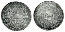 Very nice silver 2 baht coins, or 1/2 tamlungs, struck in