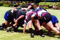 Panthers and Corsaires battle it out in a rugged scrum during the finals.
