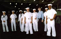 Navy personnel greeted the reporters on their arrival