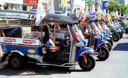 tuk-tuks converge on Pattaya A veritable army of tuk-tuks descended on Pattaya on May 27th as part of the “Tuk-Tuk Rally 2000” sponsored by Bartercard. The event raised 1 million baht for charity whilst celebrating Bartercard’s 2nd anniversary in Thailand. The inaugural “Great Tuk-Tuk Rally 2000” started at 10:00 a.m. when 50 tuk-tuks departed the Marriott Riverside Hotel in Bangkok and headed for Sukhumvit Highway, racing down the 100+ kilometer stretch of road towards the Royal Garden Resort and Plaza in Pattaya where the rally ended. A reception was prepared for the end of the Tuk-Tuk Rally at 1.00 p.m. with Pattaya Mayor Pairat Suttithamrongsawat welcoming Graham Brain, Manager of the Bartercard Board of Directors in Thailand, who presented a one million baht donation to the Bangkok South Rotary Club. The donation will go towards supporting the Ratanakosin University educational assistance programs for students from low-income families. |