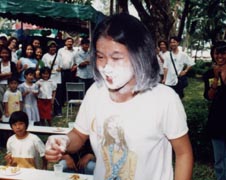 stall, where Khun Awr and her helpers were handing out free bottles of cold