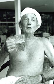 the sidewalk restaurant, watching honeymooners in super stretched limousines